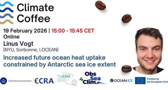 The Danish Meteorological Institute, coordinating the Horizon Europe OCEAN:ICE project, and the European Climate Research Alliance (ECRA) work in partnership to run the Climate Coffee format.